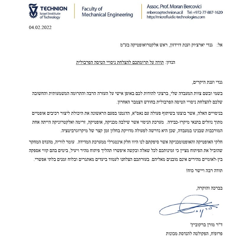 ROSH Electroptics have been supplying a variety of optical & opto-mechanical parts for the recent revolutionary Technion & NASA optical space experiment.